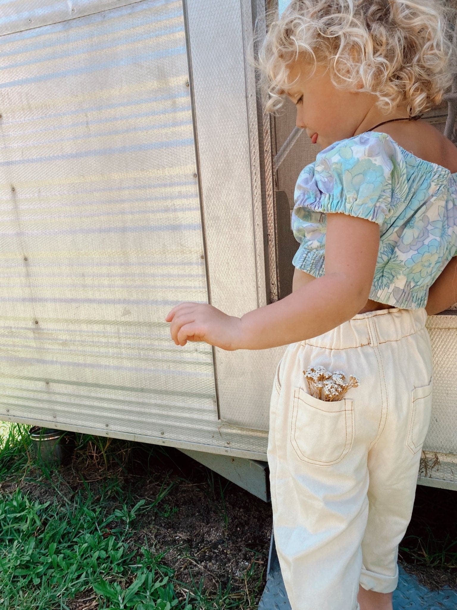 Comfort meets cool with Wolfie's newest versatile piece Jaka jean. This light-washed jeans with loose and relaxed fit can be easily paired with any top and outerwear for a leveled up look. The X pants is a pull-on bottom making it easy and stress-free during dress up time with your little one.