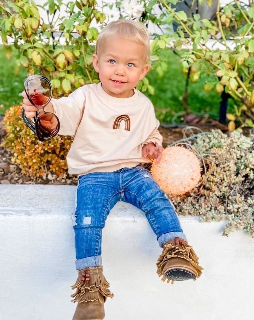 • ⋒ We usually recommend going a size up for growing bubs~ plus we just love the oversized look!