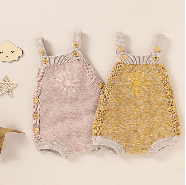 Bring a ray of sunshine to everyday with our Sunshine romper. It’s knitted to a sleeveless silhouette that looks just as uplifting on its own as when layered over a linen top thanks to its sun embroidery. To ensure the design keeps up with constantly growing little ones, we’ve also added an adjustable button fastening to its cross-back straps.