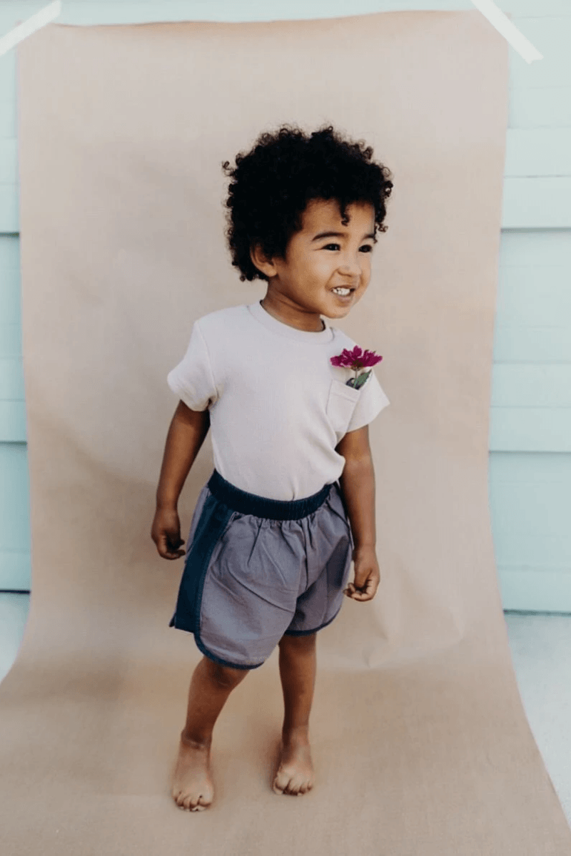 Mix and match your favourite basic pieces with the new Wilder shorts. The classic dolphin shorts is given a Wolfie twist with its two-toned colour design and a practical elastic waist band. Get your bub ready for a fun-filled playime with the comfiest pair of shorts.