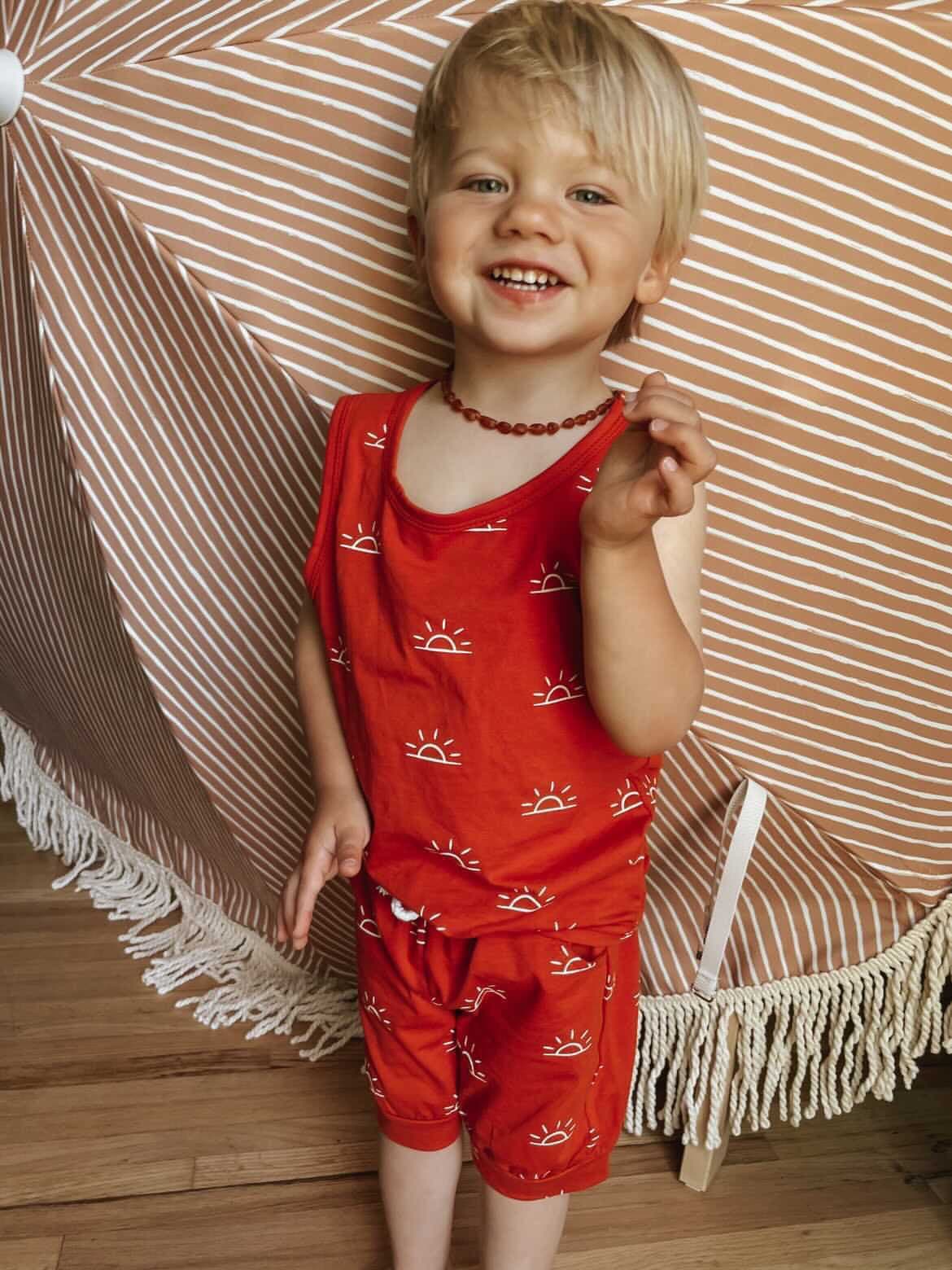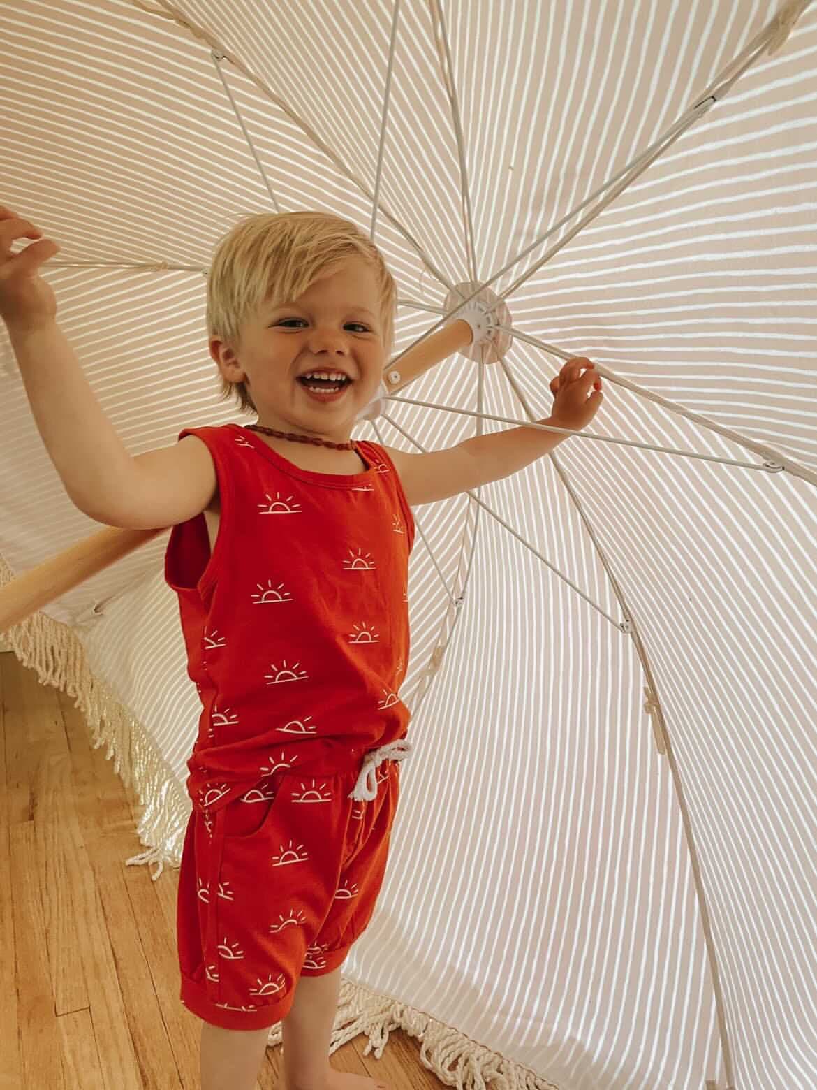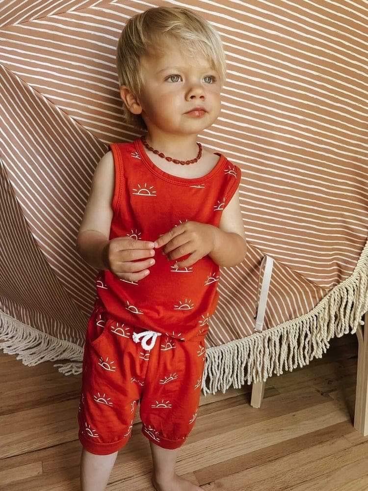 Get ready for fun-filled days and laid-back afternoons with the Yamba set. Crafted from soft and breathable fabric, the Yamba set features a matching top tank and drawstring shorts with an overall graphic print for that playful and adventurous touch.